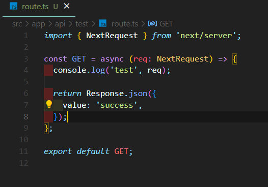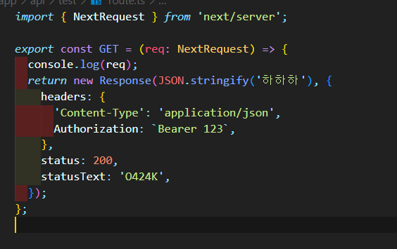 위 파일의 경로는 현재 app dir > api dir > test dir > route.ts 이다.